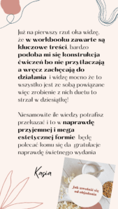 Możesz przeczytać go na raz, ale polecam zastanowić się nad ćwiczeniami i do nich wracać w miarę potrzeby.